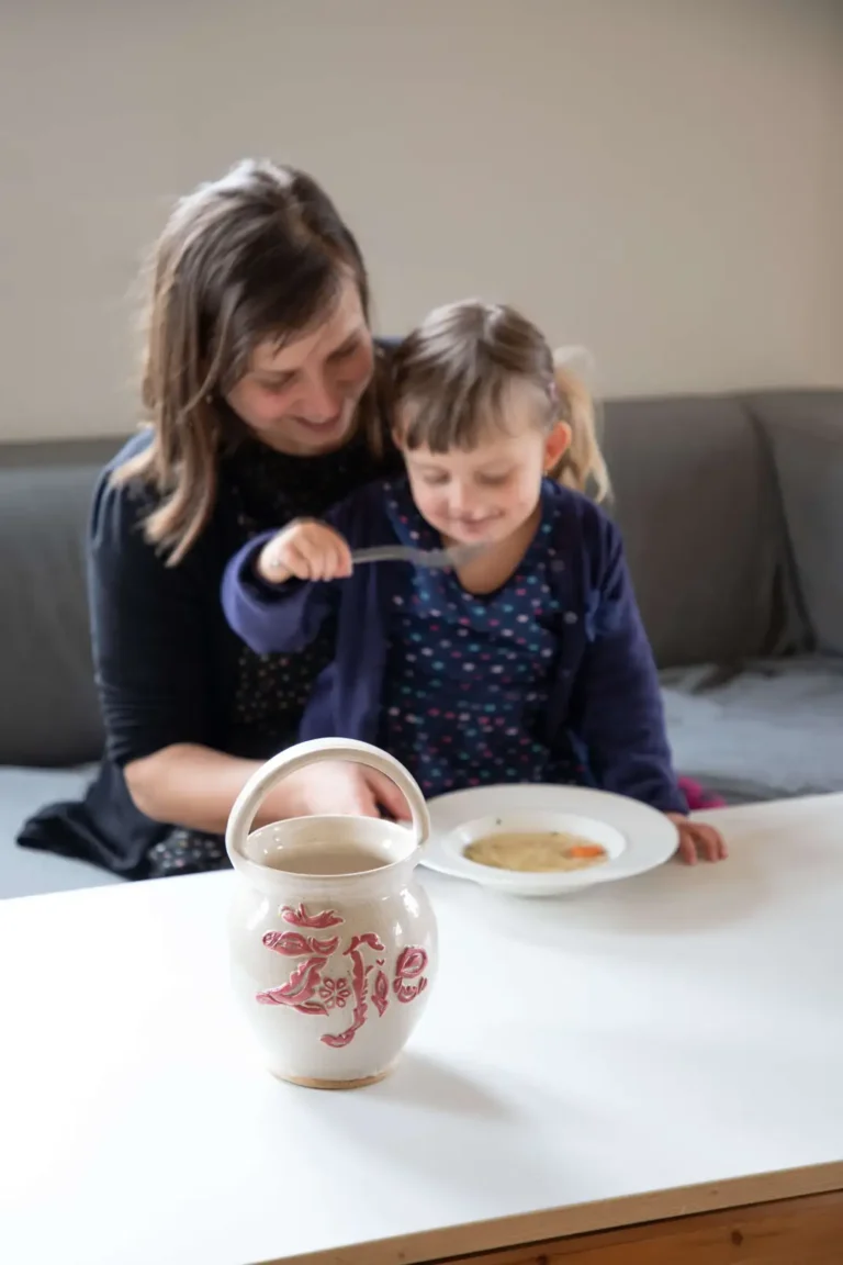 Při tvorbě koutňáků jsem pracovala s napětím mezi tradičním, archetypálním tvarem předmětu na jedné straně a originálním povrchovým designem vycházejícím z výpovědí žen o jejich prožívání šestinedělí na straně druhé. Koutní hrnec se v mém pojetí stává jakýmsi tlumočníkem intenzivní potřeby matek v šestinedělí informovat okolí o tom, co se se ženou v tomto období děje. K primární, praktické a v současné společnosti pozapomenuté funkci artefaktu, tedy nošení polévky šestinedělkám, se tak přidává funkce zcela nová, svou povahou symbolická.